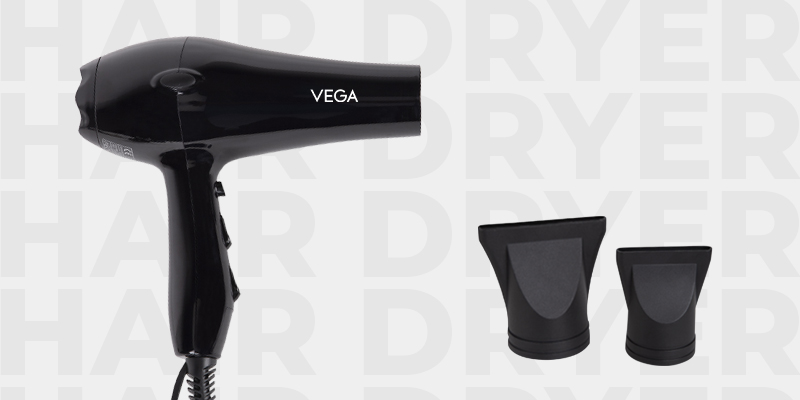 Some hair dryers come with various attachments that add value to their performance and make hair smooth and shiny without any hindrance. Investing in hair styling tools with extra attachment acts like an icing on the cake for it eases the task of at-home hair styling with a professional look. A hair dryer that is accompanied by a nozzle attachment makes the process of basic hair drying into a professional style in a few minutes! Hair dryer attachments play a game-changing role in achieving salon-quality blow dry. VEGA Pro Touch 1800-2000 Hair Dryer is the best recommended that comes with 2 detachable nozzles- medium and large that helps in concentrating the airflow in the specific direction for targeted drying and styling with precision.